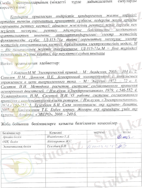 автоматтандырылған электр жетегін жобалау мәселесі қарастырылды.