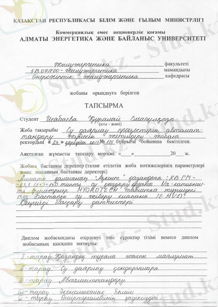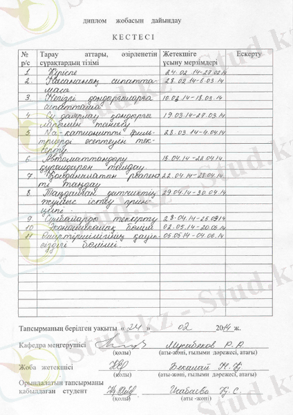 Бұл дипломдық жұмыста «Ақкент» қазандығындағы су даярлау цехінде