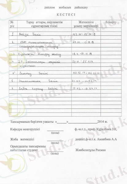 құралымның дипломының жобасының подспутника негізі зерттейміз және