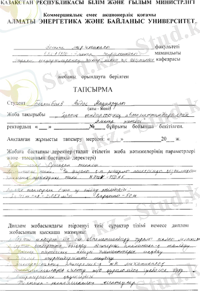 қондырғының автоматтандырылған электр жетегі ойлап құрастырылған.