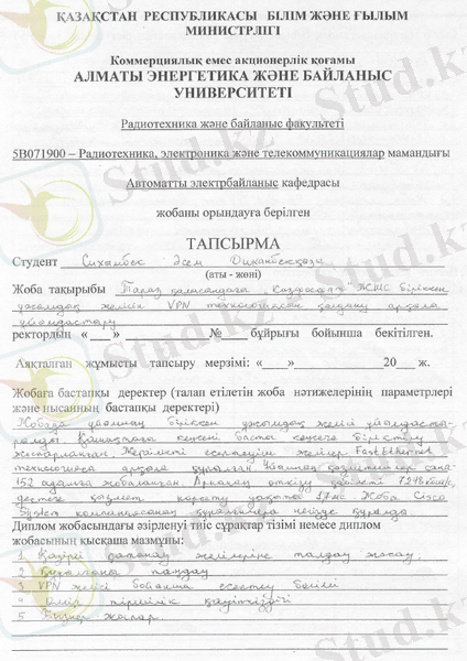 хаттамалары талданып, VPN желісін ұйымдастыруға керекті құрылғылар