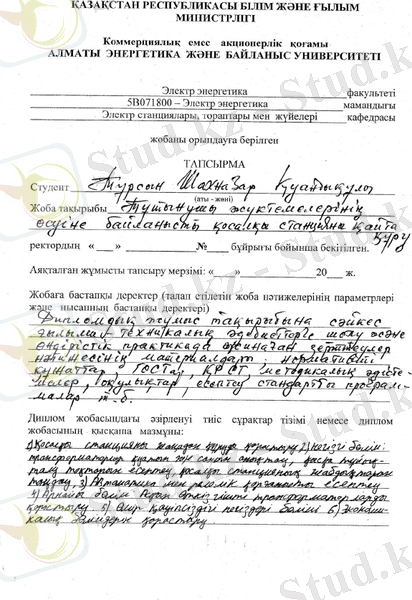 Қараой 35/10 кВ қосалқы станциясын тұтынушылар жүктемесінің өсуіне байланысты реконструкциялау және техникалық-экономикалық негіздемесі