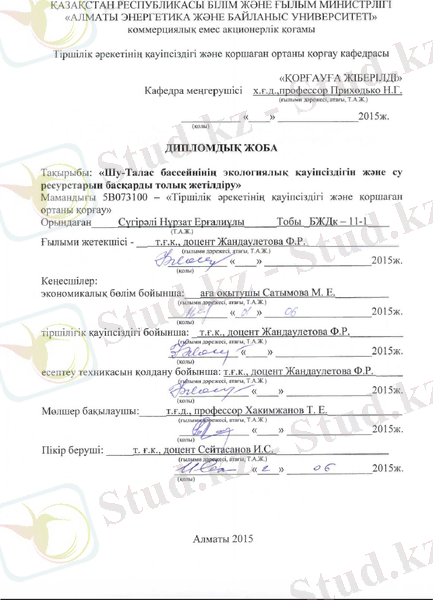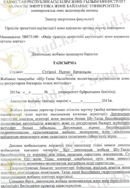 Бұл диплoмдық жoбaдa Шу-Талас бассейндерінің су қорлары мен оның