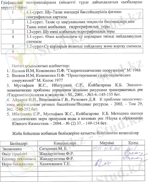 сапасына сараптама жacaлынғaн. Су қорларының Шу және Талас өзендері