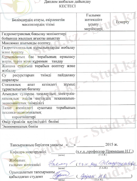 максимал шығындарды анықтадым, Талас өзені бассейнінің гидротехникалық