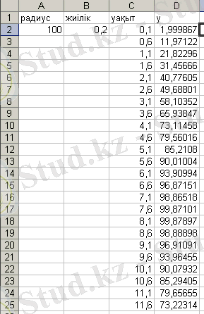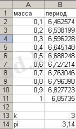 Енді Excel программасы арқылы серіппелі маятникке байланысты есеп шығарайық.