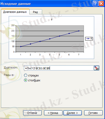 7 этап. Аяқтау. Егер диаграмма дұрыс жасалған болса, онда Готово батырмасын шерту керек. Егер дұрыс салынбаса Назад батырмасын шерту керек. Енді Готово батырмасын шертсек, мынадай диаграмма шығады(10-сурет) .