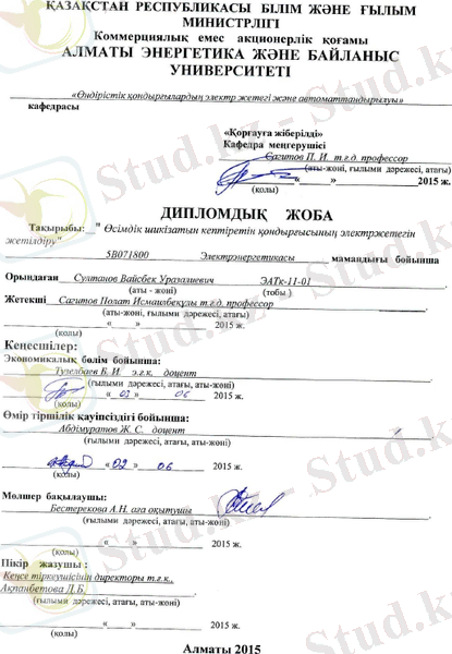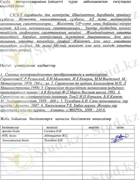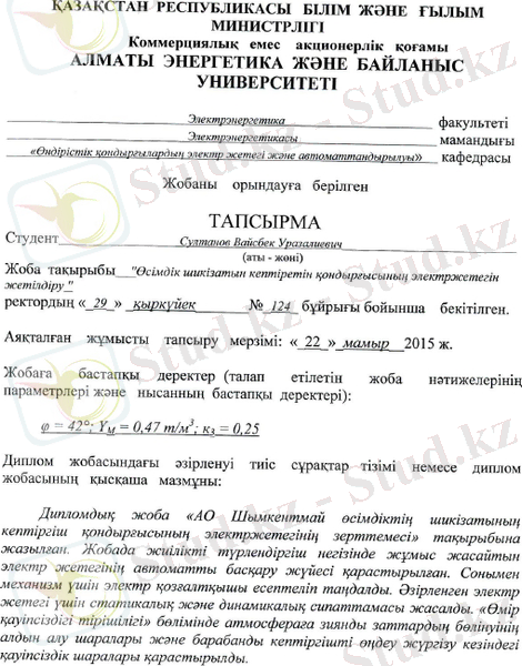 қондырғысының электржетегінің зерттемесі» тақырыбына жазылған. Жобада
