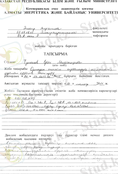 Дипломдық жоба «ОТС БЖ жылдамдық реттеуіштік айнымалық