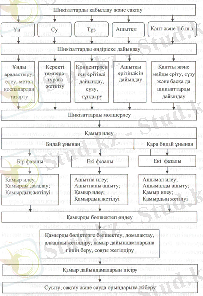 Осы технологиялық сатылардың өзі жеке-жеке ретімен орындалатын әртүрлі операциялардан тұрады. Негізгі технологиялық операциялардың реті мен мәні функционалды сызбада келтірілді (1 сурет) .