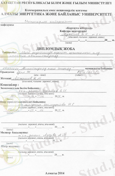 өміртіршілік қауіпсіздігі және техника-экономикалық бөлімдерден тұрады.