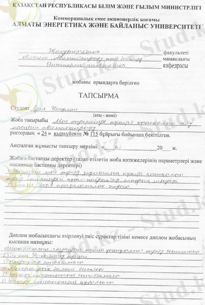 жүйесін жобалауға арналған. Дипломдық жоба технологиялық, арнайы,