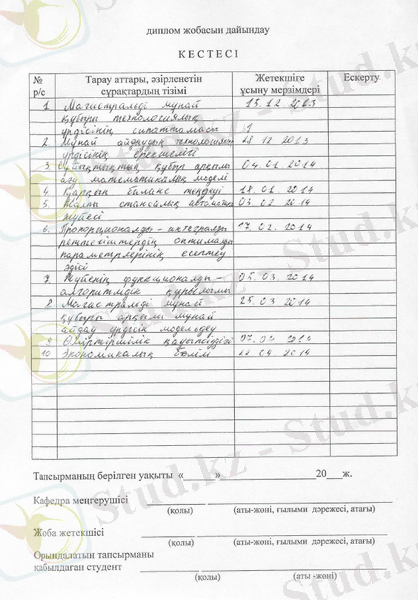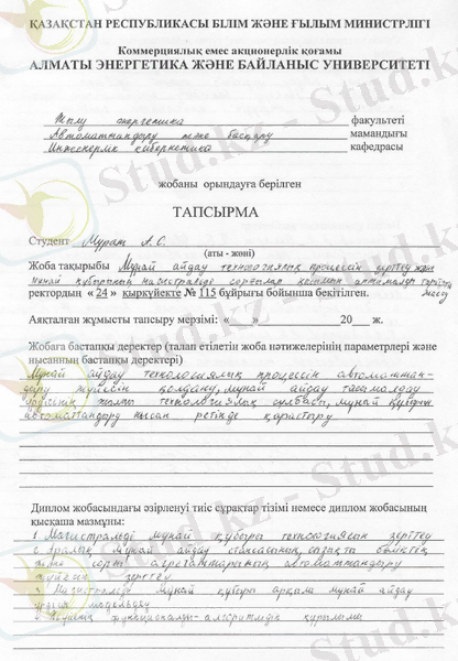 Жұмыста басқару жүйесінің техника-экономикалық негізделуі көрсетілген,