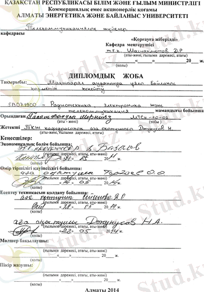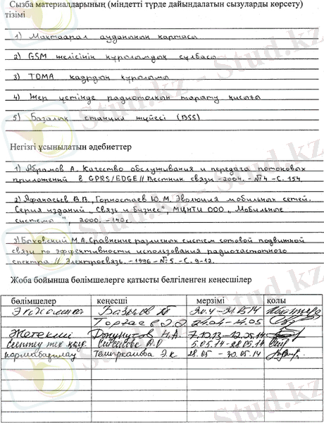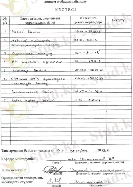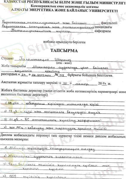 Бұл дипломдық жобада Мақтаарал ауданында ұялы байланыс қызметін