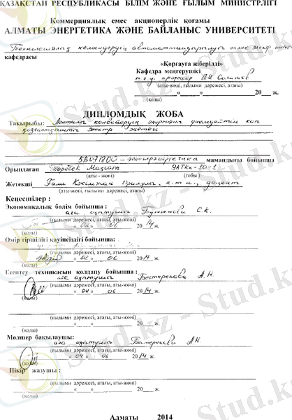 Дипломдық жобаның экономикалық бөлімінде жиілік түрлендіргіш