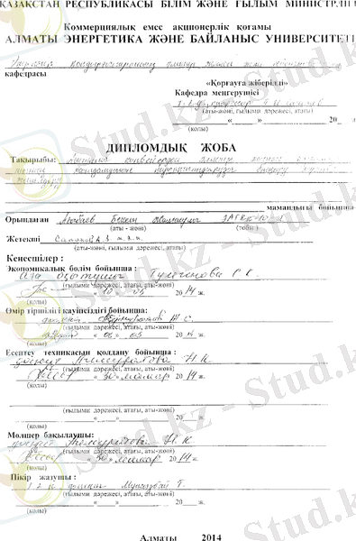 Дипломдық жұмыстың экономикалық бөлімінде тиристорлы кернеу
