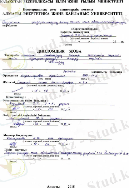 тұрақтандыруды басқару жүйесін жетілдіруге арналған. Жұмыста конвейер