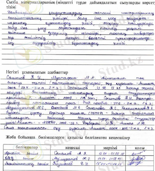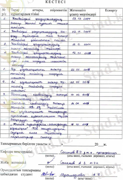 мен конвейердің электржетегінің сипаттамасы берілген.