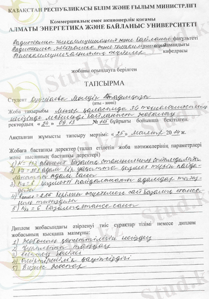 Бұл дипломдық жобада Ленгір қаласына арналған 3G сымсыз