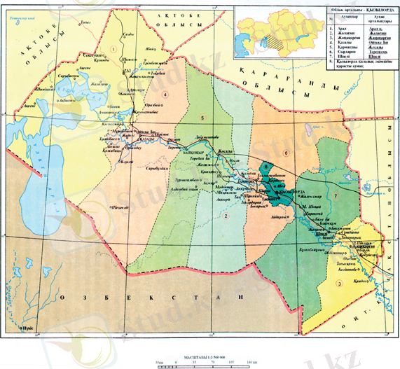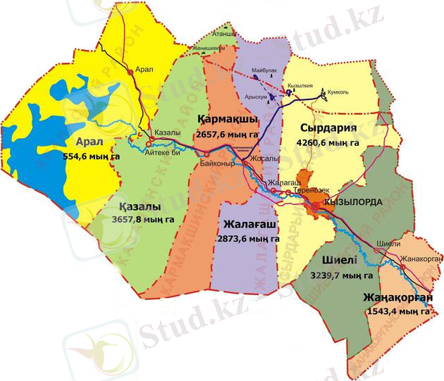 Сурет 1. 7 «Қарғалы» жеке шаруашылығы орналасқан Қызылорда облысының әкімшілік басқару желісі
