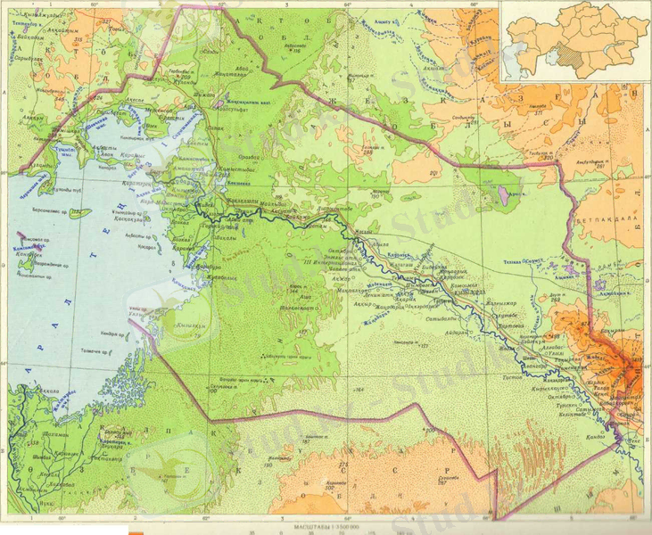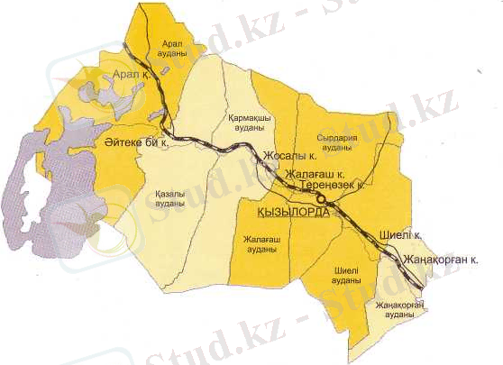 Сурет 1. 6 «Қарғалы» жеке шаруашылығы орналасқан Қызылорда облысының физикалық географиялық жағдайы