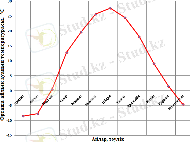 Сурет 1. 2 Қарғалы» жеке шаруашылығының орташа айлық ауасының температурасы, о С