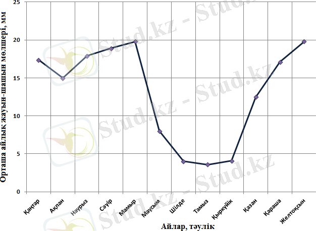 Сурет 1. 4 «Қарғалы» жеке шаруашылығының орташа айлық жауын-шашын мөлшері, мм
