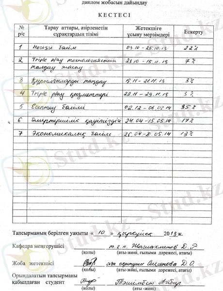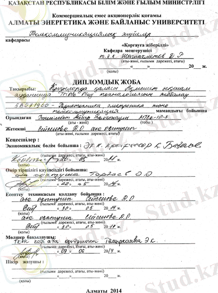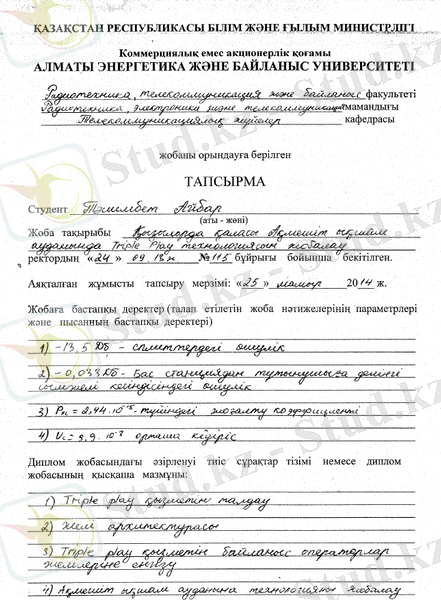 Бұл дипломдық жұмысында Triple Play технологиясын Қызылорда қаласы