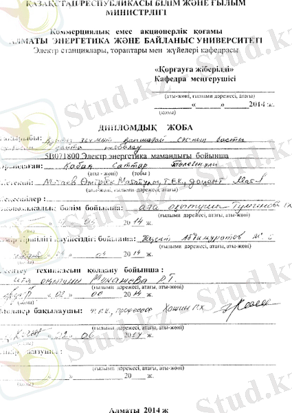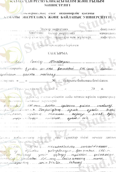 Дипломдық жұмыстың мақсаты - Қапшағай СЭС-ның электр бөлiгiн