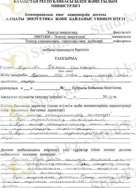 қолдану арқылы электр энергиясын алуды жобаладым. Дипломдық жұмыста