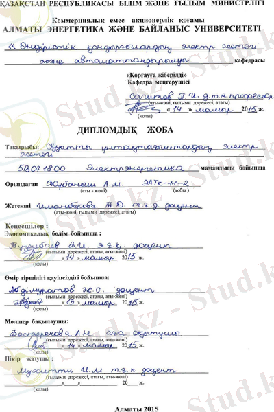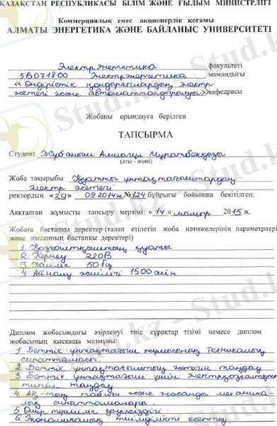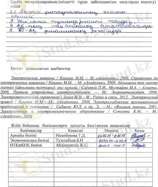негізінде электр жетегі жүйесінің экономикалық тиімділігі қарастырылған.