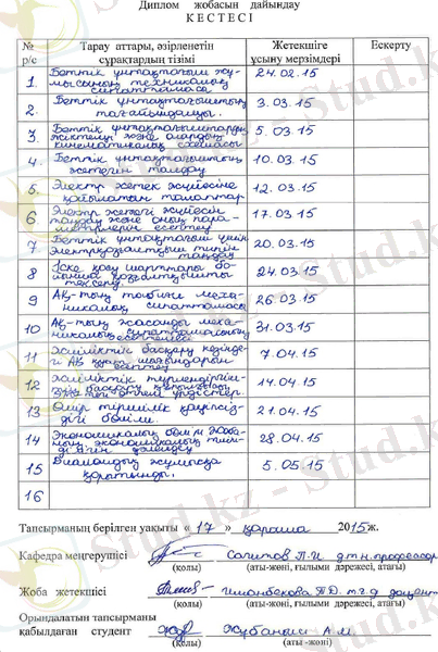Қазақ тілінде жазылған рефераттар, курстық жұмыстар, дипломдық жұмыстар бойынша біздің қор #1 болып табылады.
