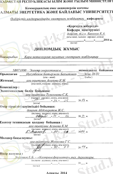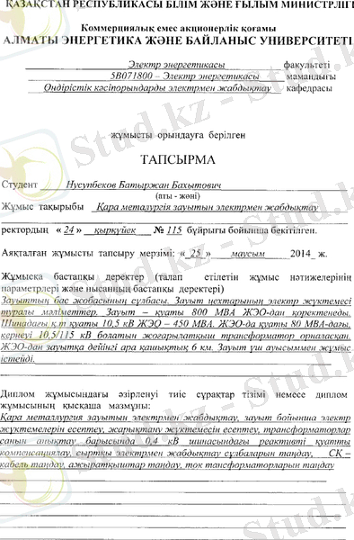 Дипломдық жұмыс қара металлургия зауытын электрмен жабдықтау