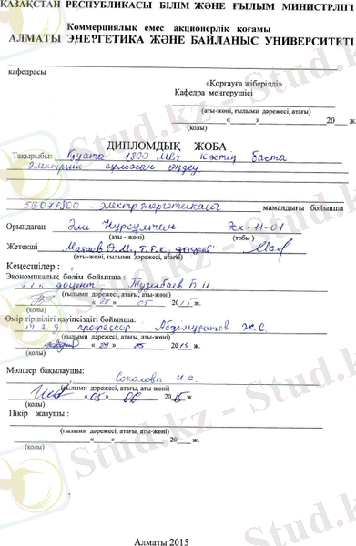 Бұл дипломдық жобаның тақырыбы қуаты 1800 МВт конденсациялық