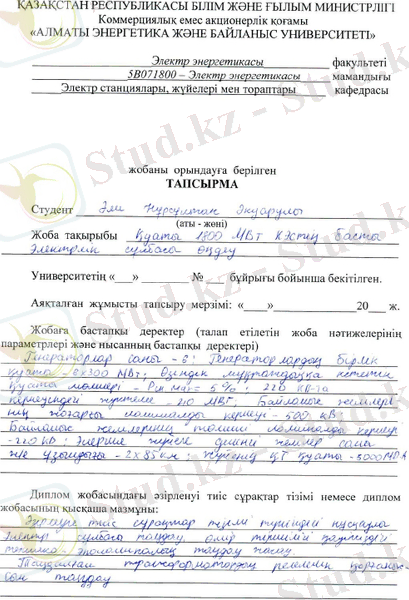 электр станциясын жобалау болып табылады. Дипломдық жоба кіріспе