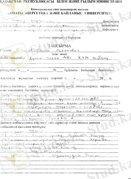 Қуаты 1200 МВт табиғи газбен жұмыс істейтін КЭС-ті жобалау: электротехникалық, жылу және техник-экономикалық есептер