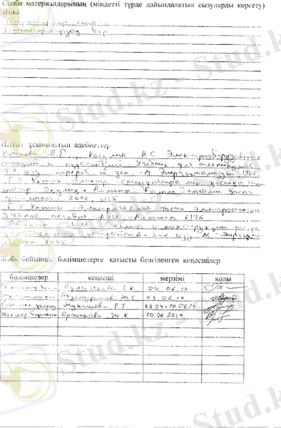 электртехникалық бөлімдердің есебінен тұрады, онда жобаланушы электр