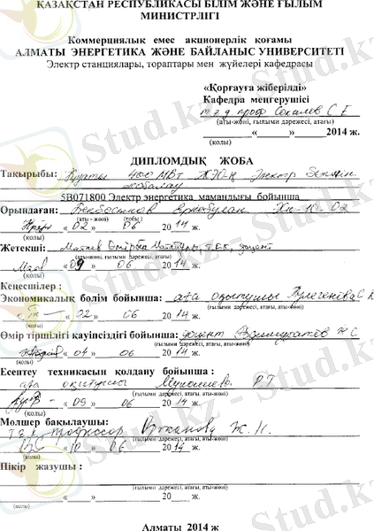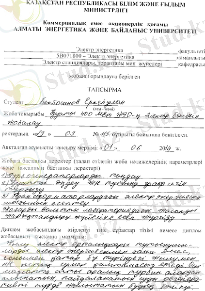 Бітіру жұмысының тақырыбы 400 МВт қуатты жылу электр