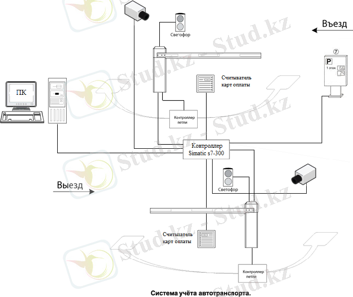 Cурет 1. 1 Шынайы кіріс/шығысы бар автотұрақтың автоматтандырылған жүйесінің сұлбасы