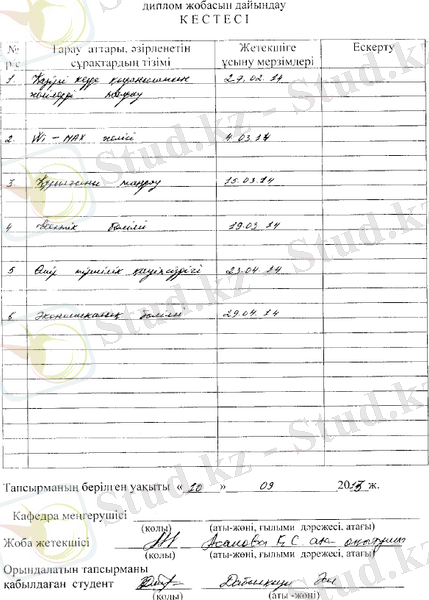 негізгі көрсеткіштері есептелінді. Сонымен қатар жобаланып отырған