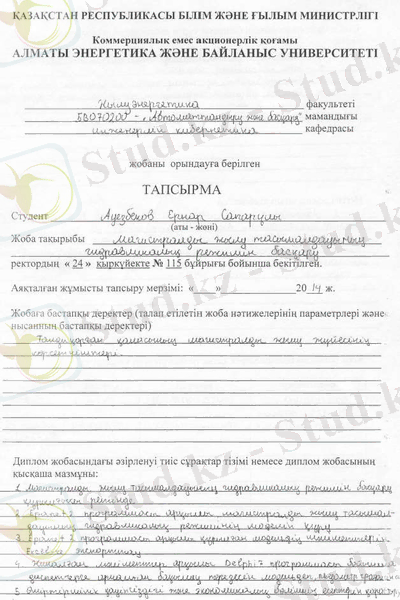 1. 1. 1 Жылумен қамтамасыз ету жүйесінің басқару құрылғысындағы