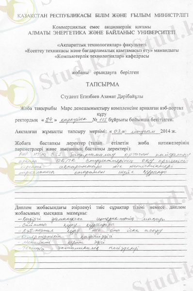 отырып құрылған және деректер қоры MуSQL Server негізінде жүргізілген.