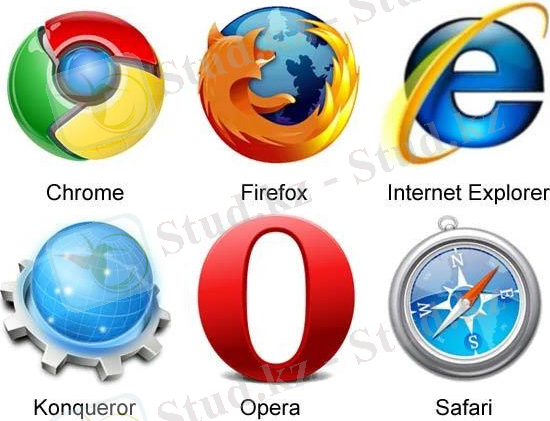 Бізге, бәрімізге браузермен таныс. Интернеттегі парақшаларды біз дәл сол бағдарлама арқылы көреміз. Қазіргі кезде браузерлердің көптеген алуан түрлері бар, 2. 1 суретте келтірілген.