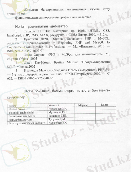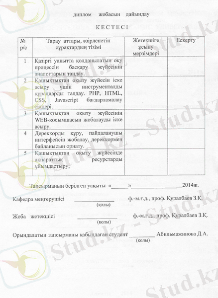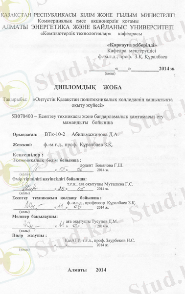 Жалпы дипломдық жоба барлық жағынан толық қамтылған және