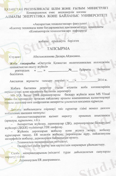 Дипломдық жобаның тақырыбы: Оңтүстік Қазақстан политехникалық