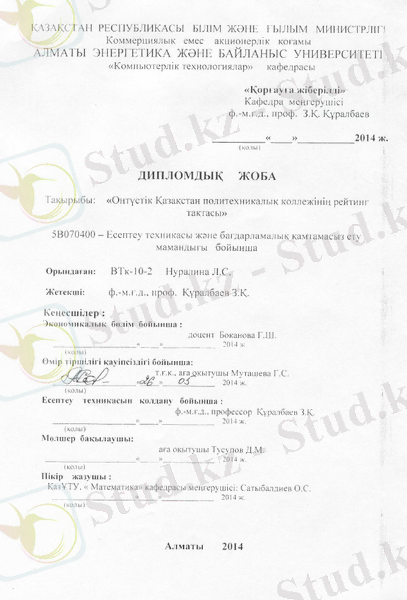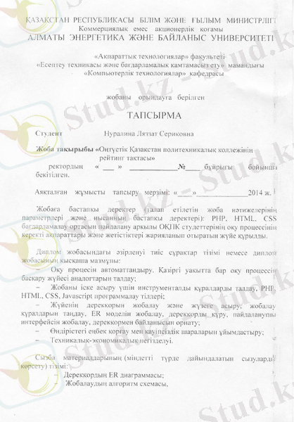 Theme of this diplom proekt is: Rating Board of South Kazakhstan Polytechnic