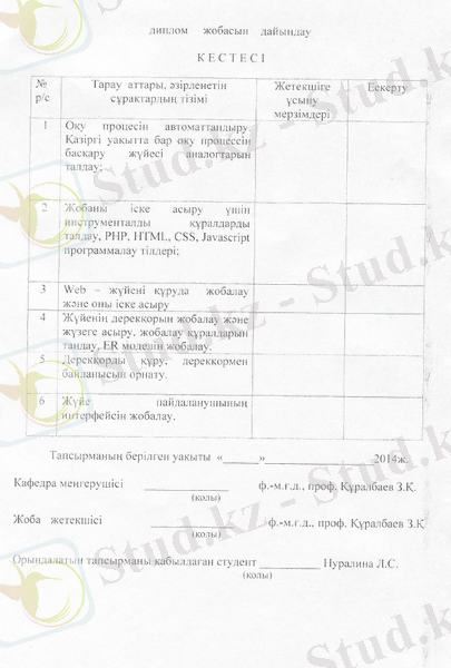Жалпы дипломдық жоба барлық жағынан толық қамтылған және