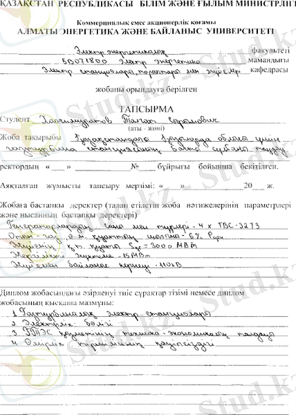 Бұл жұмыста қуаты 4х32 Мвт Қызылорда ГТЭС мысалында ГТЭС