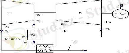 1. 4 сурет- Регенераторы бар газтурбиналық қондырғының сұлбасы.