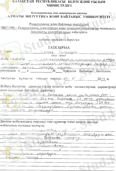 қозғалысын реттеп отырады. Менің таныстыратын дипломдық жоба осы